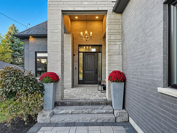 Welcome to an extraordinary custom-built estate offering over 4,000 square feet of luxurious living space on a meticulously landscaped 1.35-acre lot. Originally built in 2018 and enhanced with hundreds of thousands in recent high-end renovations, this home is a flawless blend of sophistication, comfort, and modern design. From the moment you arrive, you'll be captivated by the grand covered porch, new fluted glass entryway, and stunning curb appeal. Inside, soaring vaulted and coffered ceilings, detailed crown moulding, and expansive floor-to-ceiling windows fill the home with light and elegance. The main floor showcases a modern luxury kitchen complete with a massive center island, wall oven, cooktop, pot filler, and coffee bar, all overlooking the serene, private backyard and greenspace beyond. The open-concept living area features a gas fireplace surrounded by custom built-ins and integrated speakers, perfect for entertaining or relaxing. Two main-floor primary sites each offer walk-in closets and spa like en-suites, with the main primary featuring built-in cabinetry, a lavish dressing room, and a magazine-worthy 5-piece ensuite with heated floors and a built-in speaker system. The windows, a four-piece bathroom with heated floors, a theatre room with surround sound and entertainment zones with beautifully landscaped patio featuring a built-in gas fireplace and heated spa pool with waterfall, a putting green, and a grass area enclosed by a high-quality vinyl fence (+/-$70K). Beyond the fenced area is an extra-wide green space with forest. Additional highlights include a luxury laundry/mudroom with quartz counters and custom cabinetry, indoor/outdoor speakers, 200-amp electrical, HRV humidifier, security system with cameras, and a tankless water heater. Conveniently located near all amenities and highways with easy access to Toronto and the airport, this exceptional property offers the perfect balance of luxury, privacy, and convenience.