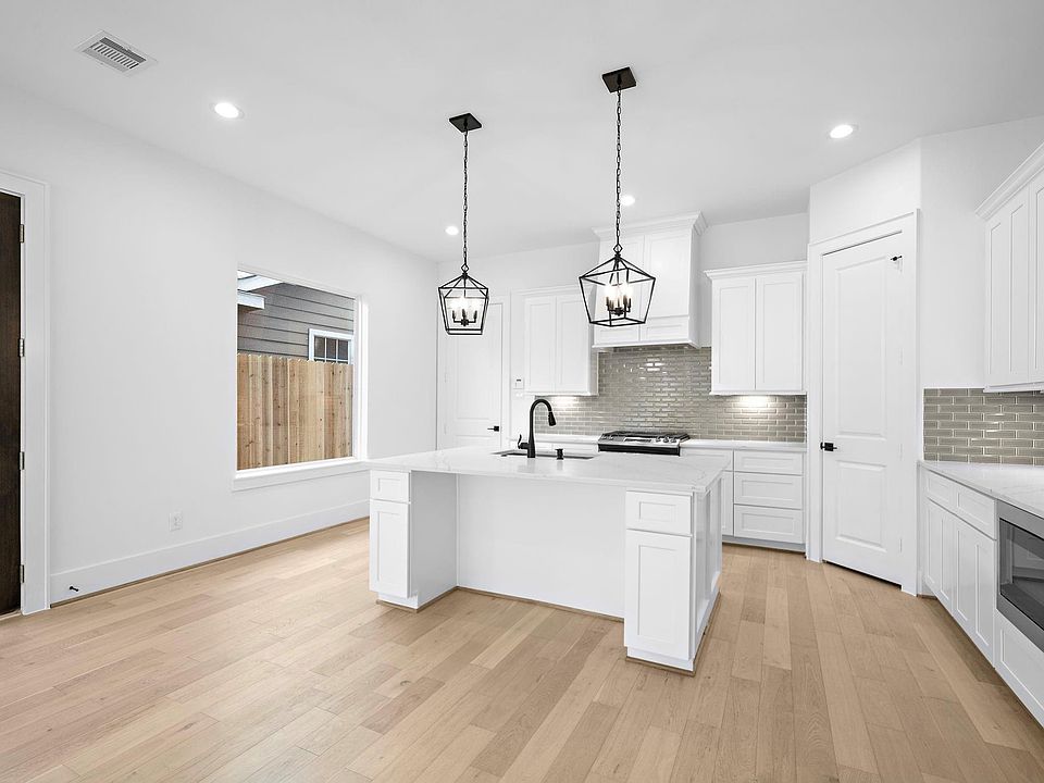Open-concept floor planAbundance of natural lightConnected dining roomFreestanding tubVaulted ceilingsOversized islandDual vanities