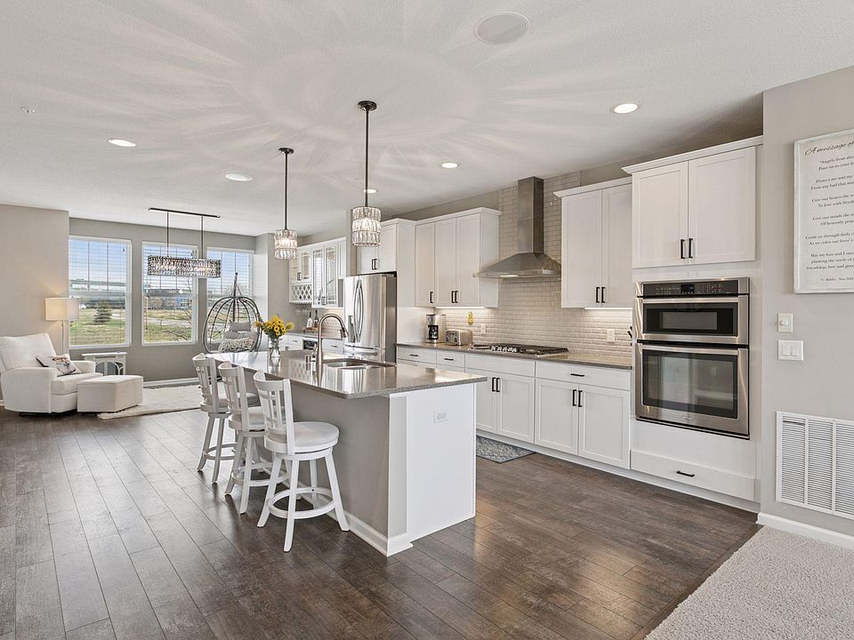 Like new end unit townhouse! Bright and open concept townhouse featuring 3 bedrooms on one level, sun-drenched kitchen, dining and living room. The entryway level features an open and spacious foyer with built in storage, along with custom built in office shelving/storage - Lower level can flex as a 4th bedroom as well. The main level allows for open flow from kitchen and entertaining spaces, onto the composite deck that overlooks a beautiful park. The townhouse has all the extras you'll need, from the walk-in pantry to the dining room bar area, custom built-ins and in-ceiling speakers throughout. Upstairs you'll find 3 spacious bedrooms, laundry, private master bathroom featuring custom closet storage. 2 block walking distance to Long Lake Regional Park, Long Lake and Rush Lake trails. Truly a must see!! Come check out this fantastic end unit townhouse!