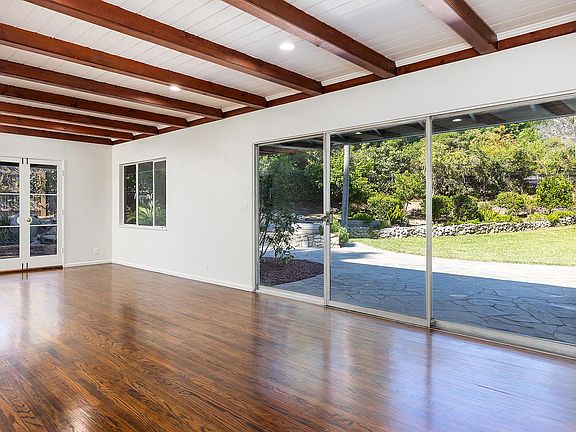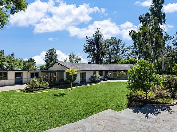 This inviting 4-bedroom, 3-bathroom ranch-style home offers a blend of tranquility, spaciousness, and modern comfort. Nestled above Eaton Canyon Golf Course, situated on a generous half acre lot, this property is a dream for those seeking a peaceful retreat. As you step inside, you'll be greeted by a warm and welcoming living space featuring a beautiful, beamed ceiling and a classic brick fireplace. Large windows frame picturesque views of the yard, filling the room with natural light. The bright and airy kitchen is a delight, with stainless steel appliances, including a brand new refrigerator and dishwasher. Hardwood floors flow throughout the home, creating a sense of continuity and charm. Every room has been freshly painted, offering a crisp and clean canvas for your personal touch. The primary suite is a true sanctuary, complete with a spacious walk-in closet and an ensuite bathroom featuring a separate shower and soaking tub. The front bedroom offers an ensuite bath with a shower, while the third and fourth bedrooms share hallway access to a full bath. Work from home in the dedicated library/office space with built-in cabinets and bookshelves. The laundry room is equipped with brand new washer and dryer for added convenience. Step outside into your expansive backyard, where the mountains serve as a pleasing backdrop. This outdoor haven is perfect for recreation, offering a sprawling grassy area, and patios, ideal for al fresco dining and entertaining. A distinct feature of this property is the large workshop attached to the garage. This versatile space can be transformed into a studio, workshop, or artist's retreat, providing endless possibilities for creativity. This exceptional property is in a great neighborhood near shopping, dining, and hiking trails. Lease term 2-3 years preferred Owner pays for Gardening service. The tenant pays for all utilites - Water, Power, Gas, Trash, Internet. Pets will be considered on a case by case basis, pet deposit will be required.