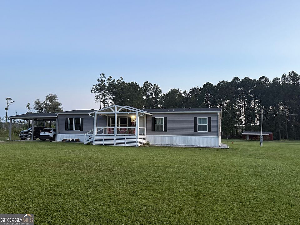 Come check out this spacious 5 bedroom 3 bath manufactured home. This 2024 model has an open concept floor plan. The additions include a carport, front porch, screened back porch, deck, shop and shed with lean to's. This private 8.24 acre lot is perfect for gardening and fishing in the pond. Get ready to make this your home!