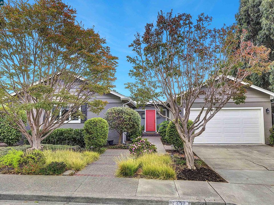 Tucked away in one of Walnut Creek’s most sought-after neighborhoods on a friendly and inviting street, this single-level ranch charmer blends modern comfort with timeless style. Just steps from the local trail system, Larkey Park, and only five minutes from downtown Walnut Creek, this home offers a rare combination of privacy, convenience, plus unobstructed views of Mt. Diablo and rolling green hillsides. The inviting floor plan features a spacious family room with vaulted ceilings, dramatic picture windows, and abundant natural light that captures the incredible scenery. The extra-wide galley kitchen includes a gas range, breakfast bar, and connects seamlessly to the bonus flex room ideal for an office, den, or formal dining space, complete with a pass-through window for added convenience. Enjoy LED lighting & hardwood flooring throughout, durable, stylish, and easy to maintain. Both bathrooms are modernized with fresh, updated finishes, and all three bedrooms offer great light and comfort. Set on a large, private lot with low-maintenance landscaping, this home invites you to relax outdoors to soak in the serene views. Additional highlights include a new energy-efficient roof (2023) and thoughtful updates throughout. Don’t miss this darling Palos Verdes gem — priced to sell!