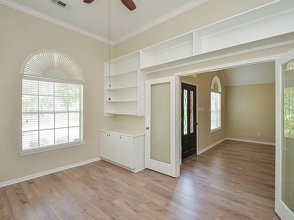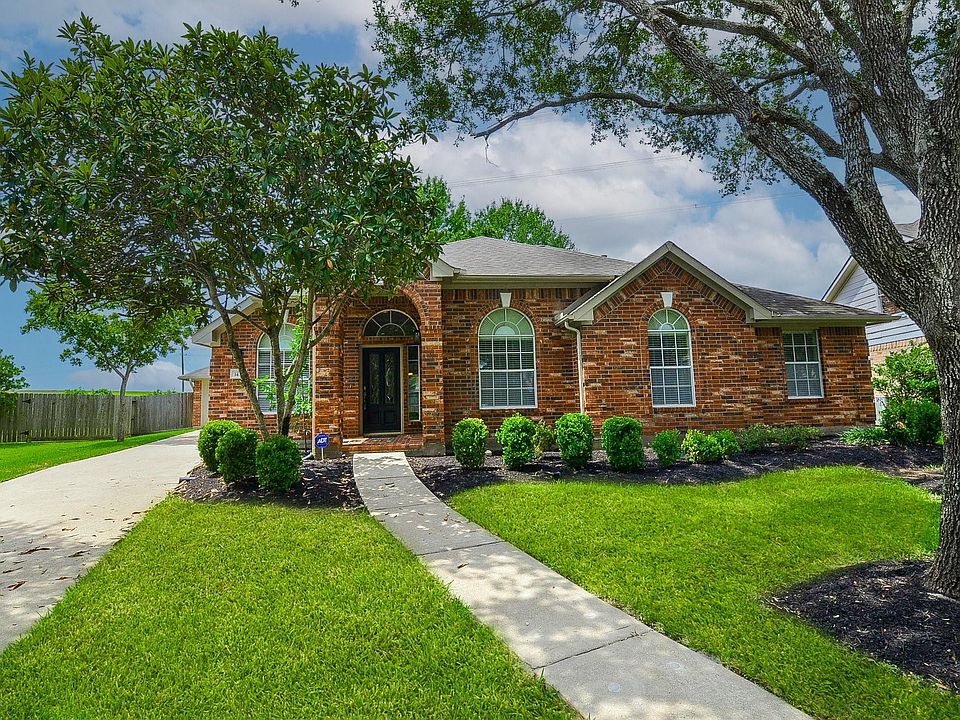 Welcome to this beautifully updated single-story home in New Territory. Curb appeal greets you with mature trees and lush landscaping. Enter to high ceilings and neutral LVP flooring throughout. Spacious family room flows into the kitchen creating a bright and open living space. The home office is complete with built in shelving and French Doors creating a quiet work space. The split floor plan offers privacy with the primary bedroom separate from the 3 additional bedrooms. Primary bedroom has his/hers closets, large soaking tub with separate shower. Pool size backyard with plenty of trees adding plenty of shade. Enjoy the privacy of no back neighbors and direct gate access to the levee with hike and bike trails. Recent updates include, fresh paint, new flooring & refinished kitchen cabinets & hardware. Plenty to do in this community with their amazing amenities to include 4 Pools, several parks, tennis courts PLUS youth activities at THE CLUB. Zoned to highly rated FBISD schools.