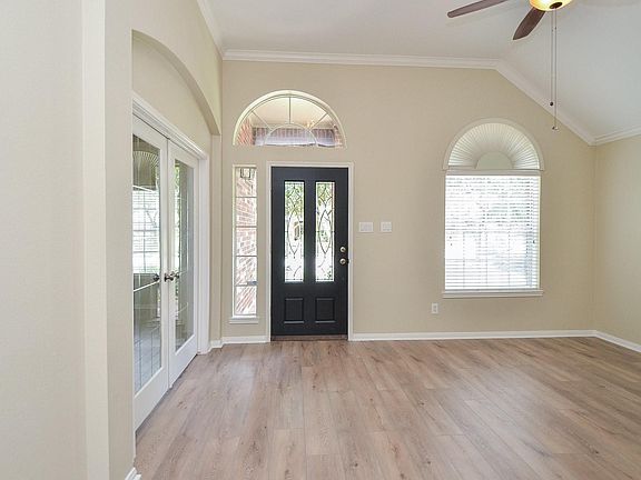 Pool size backyardHigh ceilingsSplit floor planNeutral lvp flooringSpacious family roomLarge soaking tubLush landscaping