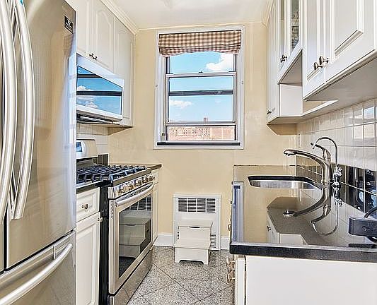 THE HOME: 1430 Thieriot Avenue #5C is an ample corner apartment with six spacious closets spread throughout its 975 square feet. Upon entering visitors are welcomed into the freshly painted, East-facing living room, which not only boasts hardwood flooring but is also a great multi-functional open space for recreation and relaxation. The windowed eat-in kitchen features granite counters and custom cabinetry with enough extra storage to make any chef happy. The king-sized main bedroom and queen-sized second bedroom offer great closet space while leaving room for wardrobes or armoires. The monthly maintenance of $1,001.33 includes all utilities.