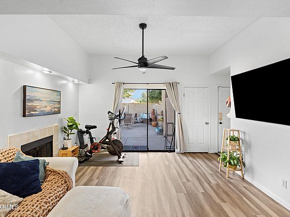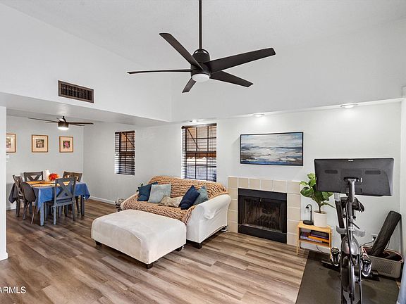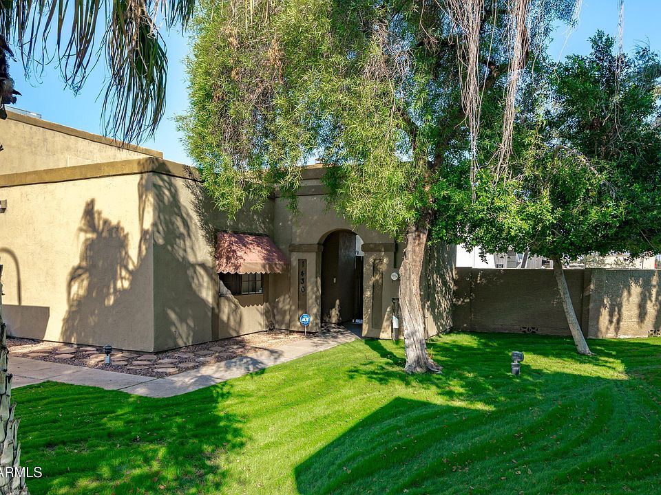 Charming and private one-level 2BR/2BA end-unit townhome in a desirable Tempe Spanish Colonial community near freeways, ASU, shopping, dining, and entertainment. This well-maintained home features newer flooring, fresh paint throughout, a newer AC unit, new water heater, new fans, and updated bathroom vanities. The spacious great room offers a wood-burning fireplace and opens to a fenced patio plus a large wrap-around backyard with new artificial turf. The functional kitchen includes a pass-through, and the primary suite has its own bath. Community amenities include a pool and two parking spaces (one covered). HOA covers water, sewer, garbage, pool, roof, and street/parking maintenance. A fantastic opportunity to enjoy low-maintenance living in a prime Tempe location.