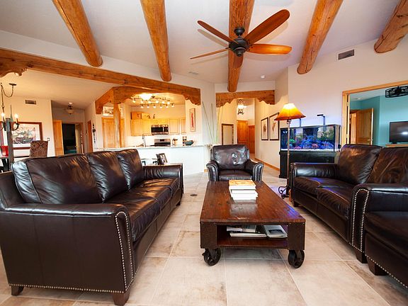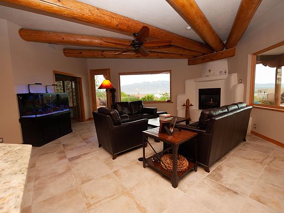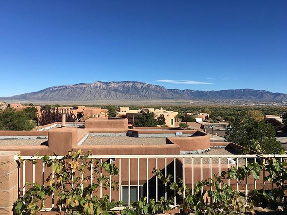 A beautiful stucco southwest-style single family home located in the highly desirable Trinity Estates Neighborhood, just .4 miles to Intel, 1 mile to Smith's Food & Drug Store, 3 miles to Cottonwood Mall and 4 miles to Presbyterian Rust Medical Center. The home will be unfurnished. The home is positioned on an oversized lot with spectacular views of the Sandia Mountains all the way from Placitas to the Albuquerque Isotopes Baseball Stadium. The home overlooks Balloon Fiesta Park where you will see hundreds of balloons launch in October with the accompanying evening fireworks or balloon glows. In the Spring and Fall, the Rio Grande Bosque leaves change colors and it is breathtaking! This home has an open floor concept with 4 bedrooms, 2 bathrooms and refrigerated air. The living room has large vigas, a gas fireplace, huge Pella windows and new Pella screen doors that open up to the backyard. The kitchen includes a custom granite countertop and new stainless-steel appliances views abound as you prepare meals on the oversized island. Tile floors were installed throughout the home with new larger baseboards along with refrigerated air. The backyard is lush, but low maintenance with a shed, Kiva fireplace, fountain, two-person hot tub, 2 porches (one covered with a large fan and one latilla patio that lets in beautiful filtered light) and a large Weber grill connected to the home's gas line. It's a great house for entertaining. The laundry space includes a new washer and dryer. 2 car garage. Rio Rancho does not allow long term RV parking. Homeowners responsible for: trash cost, quarterly pest control & yard cleanup/pruning. The hot tub will be fully drained, and ionizer chemicals will be restocked every 6 months. Renters are responsible for: utilities and routine cleaning of the hot tub. No smoking property on the property and no pets. Applicants must have good credit, pass a background check, and verifiable income.