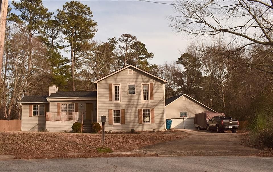 Location! Location! This spacious half acre property with NO HOA is so close to prime shopping, restaurants, entertainment, parks and several major highways and is in the top Gwinnett Grayson school cluster! Level cul-de-sac fenced lot has a huge detached 4 Bay garage with a long level driveway for all the toys (NO HOA) located just steps to house entry. This spacious, open Home features two family room areas, one with fireplace and views to kitchen, separate dining room, office and half bath on main. Three bedrooms upper including a large owner suite with ensuite bathroom featuring an updated shower. Kitchen has much storage and shelving with electric range. Laundry located on main. Front entry with open porch will accommodate sitting area, rear entry has a large deck. Roof has been recently updated 2023. Termite bond and pest control. HURRY TO COORDINATE VIEWING, truly ultimate location. Garage has workbenches, lighting, electricity and shelving; ready for your crafts and hobbies. APPOINTMENT ONLY! SOLD AS-IS!