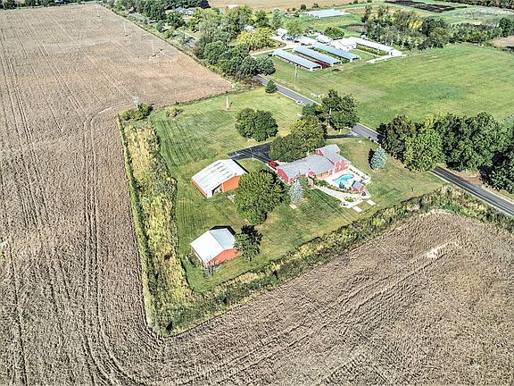 EXPERIENCE FARMHOUSE CHARM ON 2+ ACRES COMPLETE WITH 2 BARNS AND YOUR OWN PRIVATE OUTDOOR OASIS. The heated saltwater pool, uniquely shaped like the state of Michigan is the perfect centerpiece for entertaining or relaxing. This beautifully updated farmhouse blends character with modern convenience, featuring a spacious kitchen with granite countertops and a large island, ideal for gathering. The main floor offers a primary suite, laundry, office, and 2 full baths, great room, while 2 additional bedrooms with large landing are upstairs. Hardwood floors, abundant storage, and thoughtful updates inside and out make this home truly move-in ready, with room to enjoy both work and play. Versatile barns are ideal for animals, workshop, or storage for all your toys.