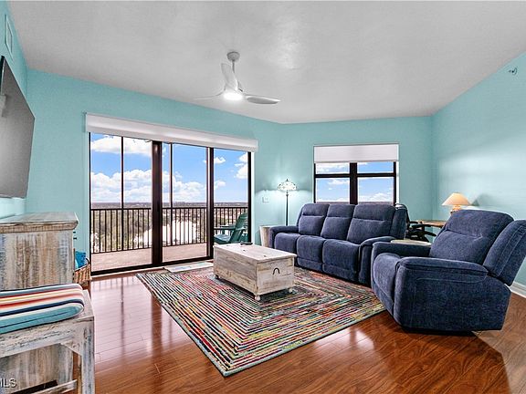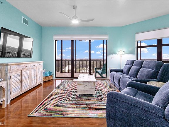 We are proud to present your luxurious seasonal retreat in the sky. Perched on the 14th floor of the sought-after North Tower at Riva Del Lago, Unit 1402 offers one of the most spectacular vantage points in Southwest Florida. From sunrise over the city to golden sunsets melting into the Gulf, your private balcony provides uninterrupted west-facing views of the Caloosahatchee River, Cape Coral, Sanibel Island, and the lush green expanse of Lakes Park just below. Each evening, the sky becomes your personal canvas of color.