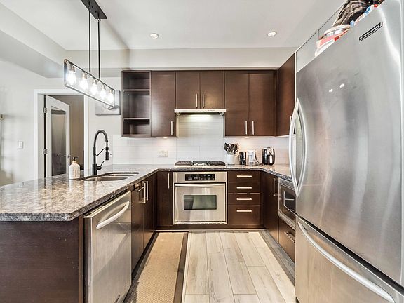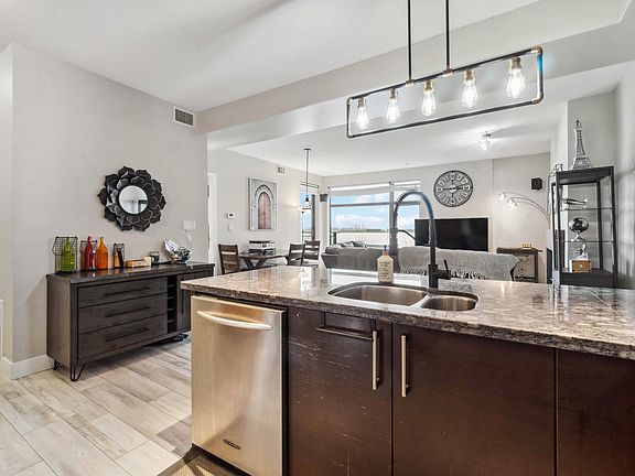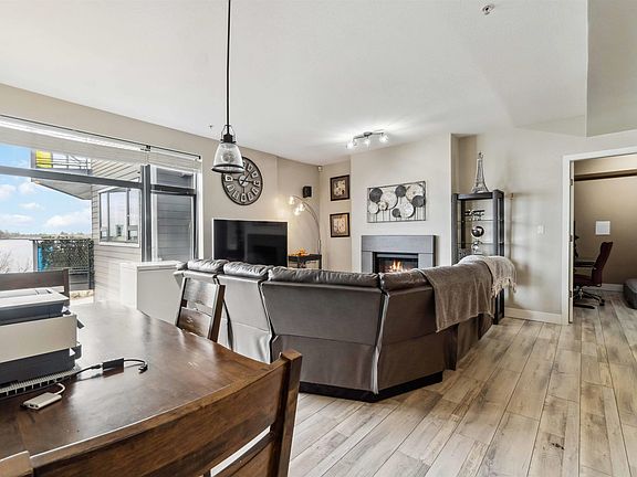 Waterstone Pier's elegant home features a beautiful kitchen w/granite countertops, pot lighting, high ceilings & open layout. Gas, Geothermal heating & cooling (Air Conditioning) are INCLUDED in strata fees! Master br and Living Room facing East w/ an unobstructed view of Mount Baker. Smart Home Technology & Automation (Alexa) control all lighting, TV & integrated audio systems which include prewired speakers throughout the home. 2nd br was used as a Media Room w/built-in cabinets for home theater. Adjacent to Entertainment Complex, Silver City, Ice Rink, Watermania, public transit. Close to Ironwood Plaza w/quick freeway access. Woodward Elementary & McNair Secondary in catchment. 1 Parking+1Locker! Upgrades:Washer (2022) Flooring (2020) https://my.matterport.com/show/?m=zLDuoE4hPEC&mls=1