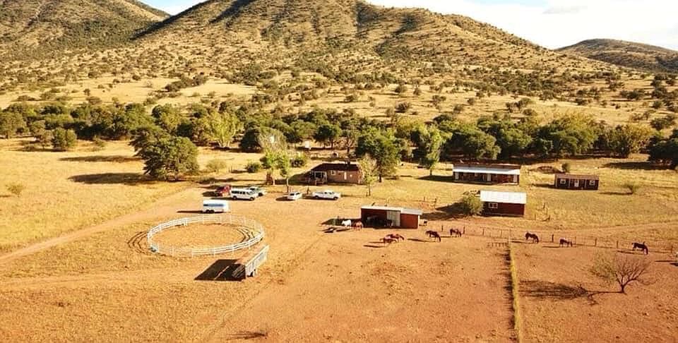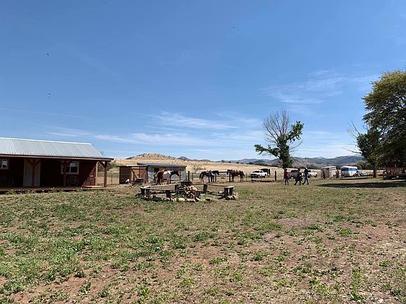 Borders National Forest & Cottonwood Creek. House has two BRs, one bath, wrap-around deck. Two guesthouses (750 sqft/ 250 sqft) 6 BRs/6Baths. Tack room & hay shed. Two pastures & a round pen. 42 acres fenced, has two gates entering the National Forest. Off grid electricity is solar. Two wells. Fully Furnished. Rare Find with gorgeous panoramic Views.