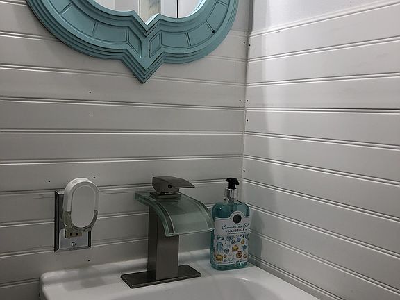 Coastal decorPicnic tablesPetit patioWood countertopsQueen pressure-relief mattressBbq pitsNew grey floor tile
