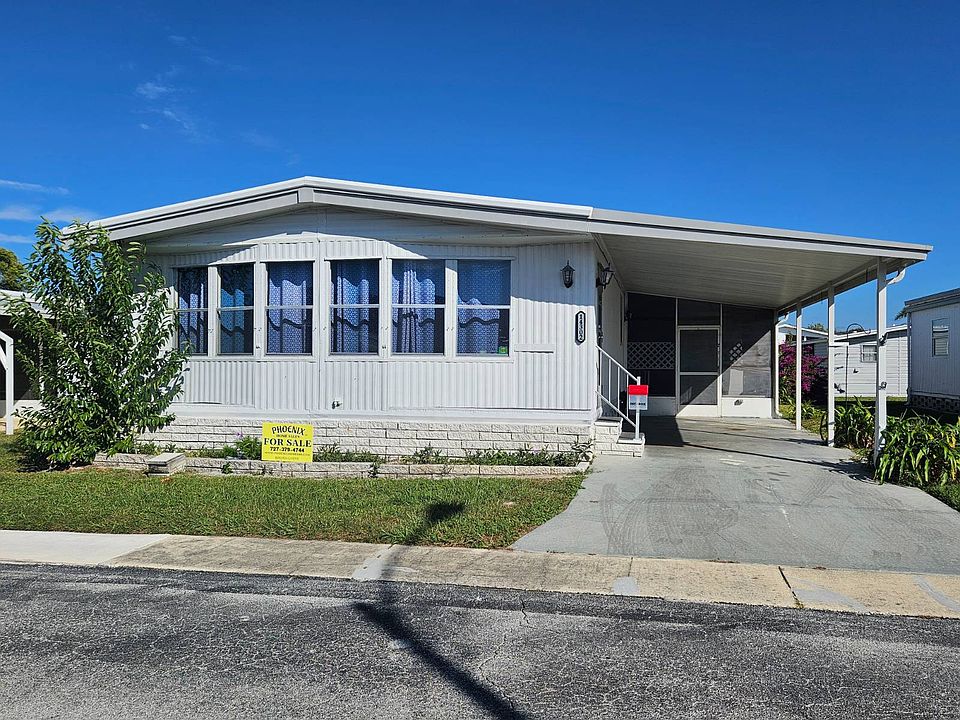 Ready to start living the 55+ lifestyle? This is the one for you! Welcome to this very spacious home that's move-in ready and packed with value. Located on a quiet side street in the highly sought-after Club Wildwood community, this mostly furnished 2-bedroom, 2-bath home is perfect for relaxed Florida living! Highlights & Upgrades: New roof - May 2025 - includes 10yr warranty Solid vinyl floors throughout - no carpet Fully furnished with window treatments in every room Large front room that can be an office, dining room, or guest space All appliances stay: Refrigerator, stove, dishwasher Both bedrooms have a spacious layout with walk-in closets for ample storage Screened in side lanai to enjoy the wonderful Florida sea breeze Laundry shed with washer, dryer and a freezer. Includes extra storage shelves Covered carport fits 2 vehicles Community Perks - Club Wildwood: Live your best life in this vibrant, 55+ community, pet-friendly (no size restriction, some breed restrictions). Enjoy: Newly remodeled clubhouse with community hall, card room, library, gym, billiards, darts & indoor shuffleboard Outdoor amenities: 85,000-gallon heated pool, new pickleball courts, bocce ball, shuffleboard, horseshoes, dog park, Veterans Park, and a peaceful catch-and-release lake Social scene: Daily events, activities, and monthly celebrations Prime location: Only 1 mile from the Gulf, with restaurants, shopping, banks, and public transportation within walking distance. Bayonet Medical Center is just across the street. Lot rent: $755/month - includes lawn care, trash/recycling pickup, and full use of all amenities. RV & boat storage available (subject to space). Don't miss your chance to join this welcoming, active, and affordable Florida lifestyle community. Schedule your showing today! *Park application and background check required for residency approval.