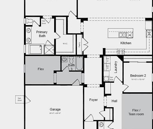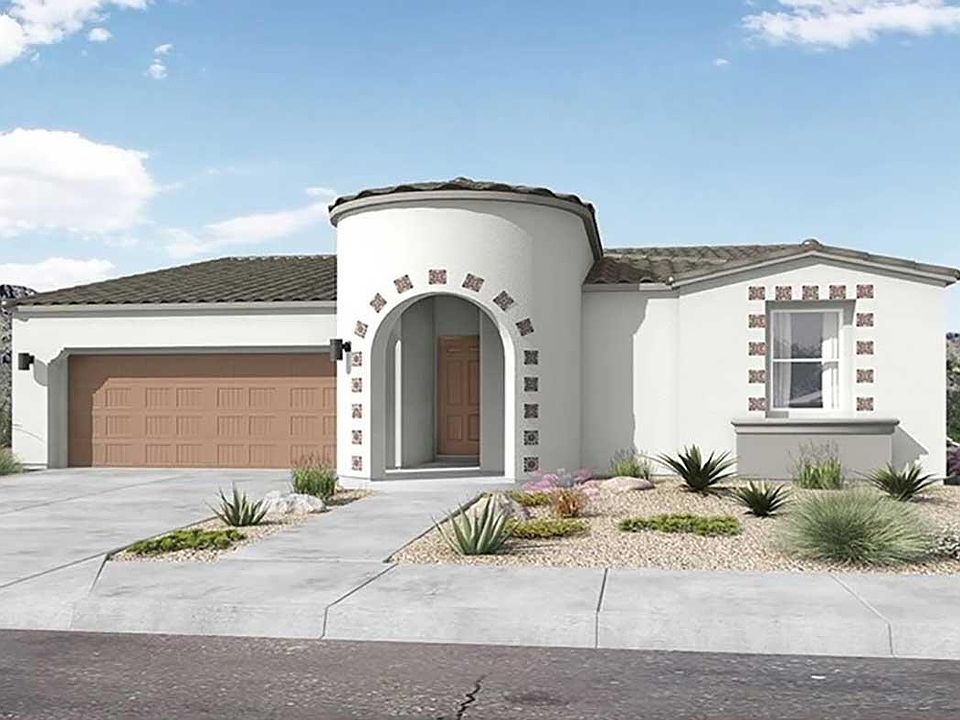MLS# 6758403 December Completion! The 45-RM1 floor plan at Rancho Mercado is a single-story home featuring 3 bedrooms, 3 bathrooms, a teen room, a flex room, and a 2-car garage. The foyer leads past the secondary bedrooms to an open-concept kitchen, great room, and casual dining area, creating a warm and inviting space ideal for family time or entertaining guests. The primary suite offers dual vanities in the bathroom and a generous walk-in closet for added comfort and convenience. Structural options include: paver front porch, teen room in lieu of flex room, flex room in lieu of storage room, alternate A/C location, soft water loop, reverse osmosis system, and 2'' faux wood blinds.