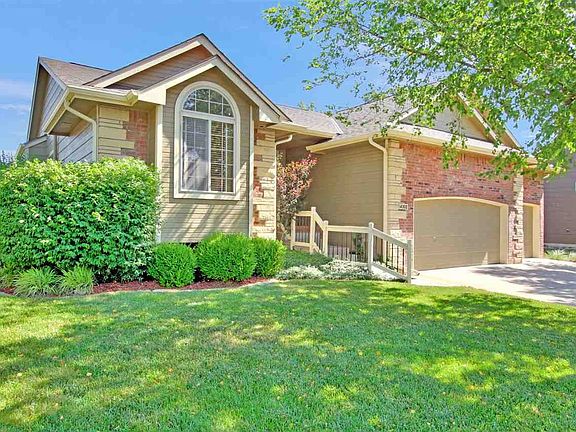 Picture perfect 5-bedroom, 3-bath, w/3-car garage in Goddard School District. Beautiful open floor plan w/vaulted ceilings. Cozy fireplace in the living room. Large eating bar in kitchen, newer stainless steel appliances and pantry for extra storage. Large maser 2/bath featuring 2 vanities, tile floor & separate tub & shower. Finished basement has an additional 2 bedrooms, full bath & a family room w/wet bar. Pool table remains! Cul-de-sac lot, privacy fence, covered deck, gorgeous landscape & sprinkler system. Laundry on both levels!!! Brand new Roof!