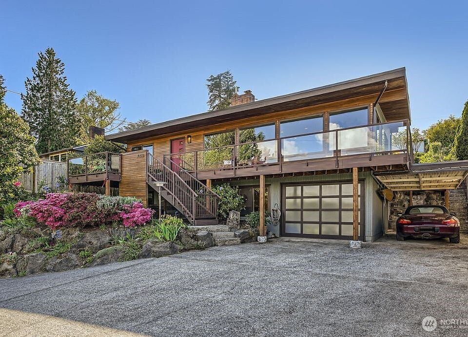 Elevated Mid-Century Modern turn-key home in coveted Cedar Park neighborhood w/ Lake Washington Views. Remodeled kitchen and baths & refinished original oak floors. Anderson windows, newer wrap around composite decks w/ views. Newer roof and gas furnace, new water heater & kitchen appliances. Built for entertaining with open floor plan, bbq area, wet bar, cabana bar & hot tub. Home office spaces, and easy conversion to MIL unit in lower level. Quick commute to anywhere, minutes to Light Rail or Burke Gilman Trail.