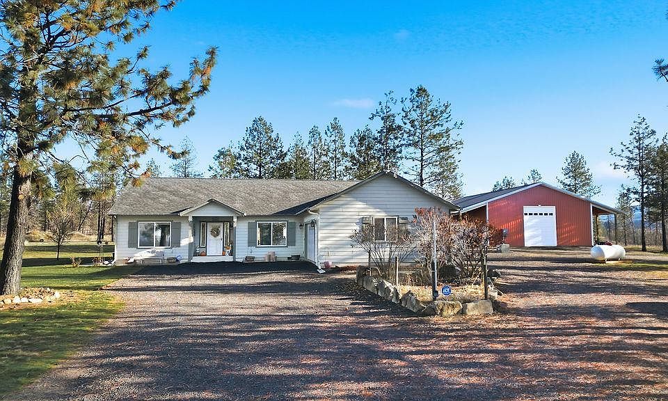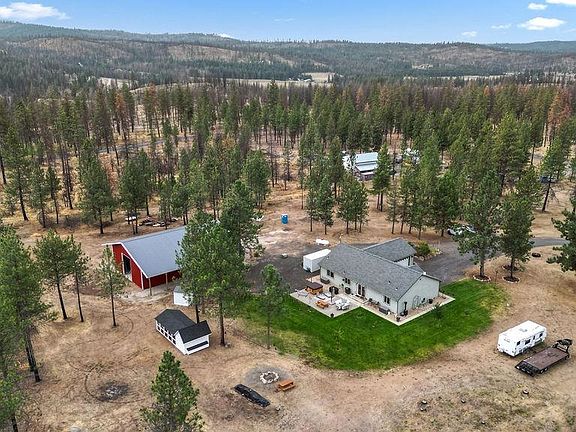 Fantastic opportunity for your own mini farm! Nestled on nearly 19.88 acres that feel like a beautifully groomed private park. This single-level 1,940 sq ft home offers 3 bedrooms, 2 bathrooms, and an inviting open layout. Enjoy entertaining on the spacious patio, soaking in the hot tub, and relaxing under the stars. The home comes with a whole-house generator for added peace of mind. In addition to the beautiful home, this property features a massive new 40x60 drive-through shop with 12x14-foot doors, concrete floors, power, lighting, and gravel pads. Plus, you'll love the greenhouse and solar-heated chicken house with an enclosed roaming area. Chickens are a warming gift. With a fully insulated, drywalled, and heated garage, it doubles as a gym and craft area. Located at the end of the easement with no through traffic, it offers the perfect blend of privacy and modern conveniences.
