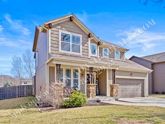 Don't miss this wonderful 2 story Craftsman home! Built in 2015, in the Olathe South school District this home is perfectly situated. It offers a lovely open floor plan to the spacious kitchen, which offers granite counter tops, walk in pantry, and easy access to the fenced in back yard for entertaining. The second floor laundry is conveniently situated just across the hall from the main bedroom. Don't wait to check out this fantastic, meticulously maintained home, because it won't last long!!