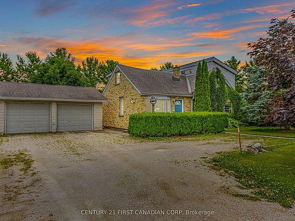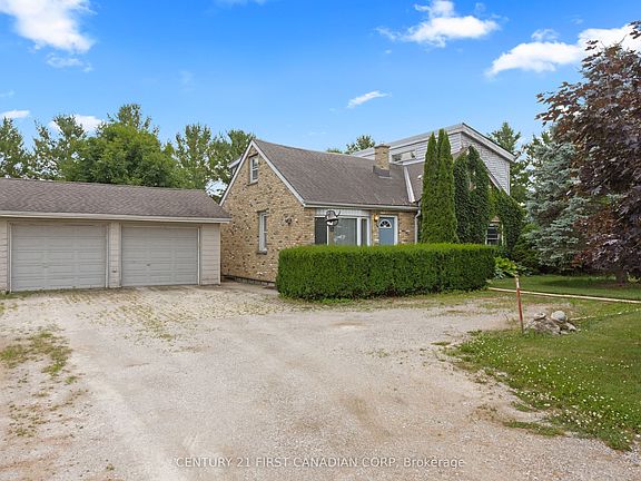 Country Charm on mature, tree-lined **ONE ACRE** estate sized lot! Welcome to peaceful country living with unbeatable convenience! Surrounded by open farmers fields, this charming yellow brick century home offers tranquility, privacy, and breathtaking sunrise and sunset views, all ideally located just minutes south of Lucan, 12 minutes to North London, and with Birr and Ilderton between. Step inside to find a home that is inviting and full of character and function, featuring a spacious main floor bedroom with built-in closet and full bathroom - perfect for guests or aging-in-place. The refreshed kitchen offers plenty of prep space and ample storage with crisp white cupboards and large windows to enjoy the view, while the bright and airy family room is ideal for cozy evenings or gathering with friends. Upstairs, the large primary bedroom boasts its own ensuite bath, transom window and plenty of space, while a second bedroom with double closets offers flexibility for family, guests, or a home office or craft room. The partially finished, spray foam insulated basement includes a separate office, an additional full bathroom, and tons of storage space. Outdoors, you'll find a private, tree-lined yard ideal for entertaining, relaxing, or letting the kids roam free. Enjoy summer BBQs on the large patio with awning or quiet moments with a book as your laundry dries naturally on the clothesline. Need space for your hobbies? The oversized 24x18 detached garage is perfect for car enthusiasts, ATVs, snowmobiles, or workshop space. If you've been craving a slower pace, wide open skies, and room to breathe, all within a great school zone and close to all amenities, this is the opportunity you've been waiting for at a reasonable price. HWT owned (2023), Furnace (2023), Sump Pump (2023) Country living with everyday convenience. Value and lifestyle meet here! Floor Plans Available.