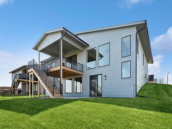 Almost new, built in 2021, walk-out ranch, has an open plan with lots of windows and light, 2,845 SF, 4 BRs (2 BRs up & 2 BRs down), 3 baths, 2 family rooms & a 3 car garage. The first floor has hardwood floors, kitchen with white cabinets, walk-in pantry, gas stove, outside exhaust vent fan, white cabinets, quartz counters; owners BR has walk-in closet; owners bath has 2 sinks & large tile shower; 2nd BR, ¾ bath; laundry room & drop zone. The walk-out basement has a large family room with walk-behind wet bar with beverage refrigerator; 2 more BRs & 1 bath. The home faces south, so the driveway melts and the covered deck is shaded.