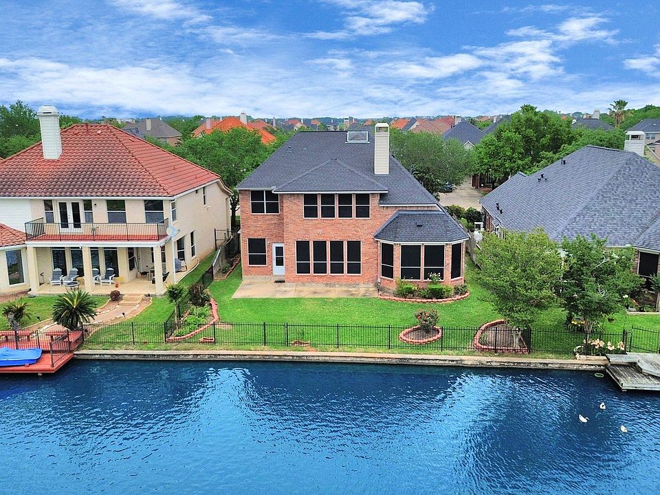 Beautiful 4 bedroom, 3 bathroom waterfront home located in the Chelsea Harbour community of Sugar Land. Enjoy stunning water views from the gated backyard. This spacious David Weekly floor plan includes a large upstairs retreat/game room, private home office, and a bright kitchen featuring a granite island and cozy breakfast nook. The skylight adds natural light to the main living areas. The primary suite and additional bedrooms offer comfort and flexibility. Ideal blend of elegance, functionality, and peaceful waterfront living. *New carpeting recently installed throughout home June 2025*