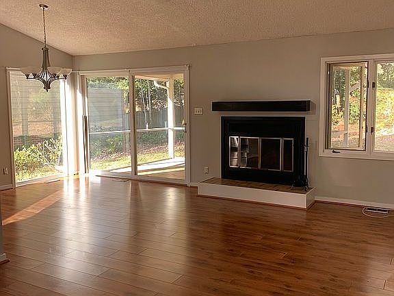 Contemporary ranch style home with water views close to the community pool and walking trails. Bright open family room with vaulted ceilings, skylights and a wood burning fireplace. The updated kitchen has stainless steel appliances, a built-in pantry and attached sitting area. This home has a spacious master suite with a walk-in closet, large bathroom with double vanity, and deck access. An oversized garage with a full attic provides plenty of storage. Large deck, screened porch and private backyard are perfect for enjoying the outdoors and entertaining.