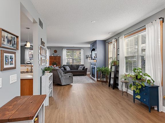 End-unit comfort surrounded by nature! This beautifully updated 3-bedroom, 3-bath townhome offers a bright and welcoming space with stylish new finishes. Enjoy brand-new LVP flooring on the main level, a cozy gas fireplace, and vaulted ceilings that add a spacious feel. The kitchen features heated floors—perfect for those cool Minnesota mornings! Upstairs, you’ll find new carpeting, a comfortable primary suite with a walk-in closet and double-sink bath, plus two additional bedrooms (the loft was converted into a third bedroom) and full bath off the hallway. Tucked among mature trees and open green space, this end unit offers privacy and room to relax—inside and out. Move-in ready, filled with natural light, and easy to love!