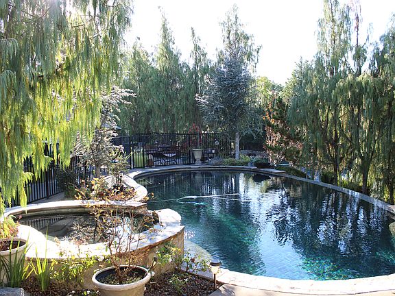 Resting on an exceptional lot in Bridlewood Country Estates, a prestigious gated community in Poway, is this enchanting and peaceful home that will take your breath away with its incredible amenities and gorgeous design. Truly a remarkable floor plan with a master suite on the first floor, along with an office/bonus room with bath, living room with stone fireplace, dining room and absolutely stunning kitchen and family room. Custom details include wood flooring, beautifully designed bathrooms, gorgeous lighting fixtures, large laundry room with built-ins and so much more! The kitchen offers two center islands, Viking Stove, top of the line appliances, mosaic backsplash and looks out to the family room with built-ins, fireplace and mini bar area. The master suite features a lavish bathroom which comes with a free standing tub looking out to a tranquil fountain and shower with mosaic flooring! Upstairs you will find three nice sized bedroom suites, two which have a Jack and Jill bathroom while the other with its own. The 1.1 acre outdoor grounds are simply sensational, with a pool/spa, fireplace, outdoor kitchen, built-in BBQ and lush landscaping! One will never want to leave this home! In a different part of the yard you will find a tennis court, (net has been removed, see CFR) veggie boxes and rose gardens! In addition, the owners have converted the 4 car garage into a guest house with living room, kitchen, bed/bath and laundry room.