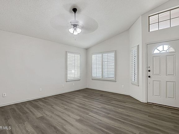 Dining area, and half bath completes the main floor. The property was just remodeled Nov 2025 included was all indoor paint, flooring-laminate hardwood flooring on main floor and carpet stairs and second level. All appliances are included and were recently purchased including refrigerator, gas stove, dishwasher, washer and dryer. REFRIGERATED AIR ! Wooden Shutters throughout most of the windows. Double car garage with laundry room. Backyard with a patio and trees/shrubs align the back walls. Within walking distance to school and parks. Within minutes to shopping centers, restaurants. loop 375 and Fort Bliss.
