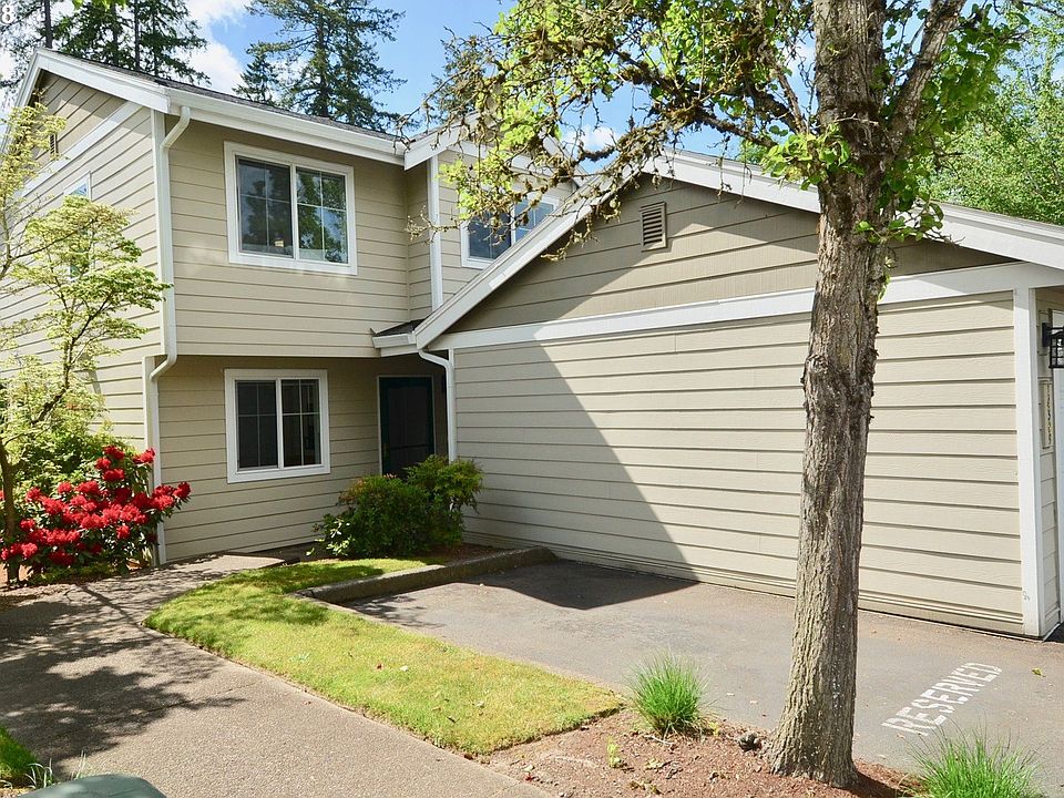 Light filled 3 bedroom condo w/east,southern exposure lives much more like a townhome.Hard to find 1 car garage plus your own extra deeded parking space next to garage.Kitchen w/slab granite counters,open to dining/great rooms.Laminate floors thru the main level.Great room w/fireplace opens out to patio and very nice setting w/greenbelt feel.Excellent schools including new Mountainside High.Central a/c,washer,dryer,fridge included!