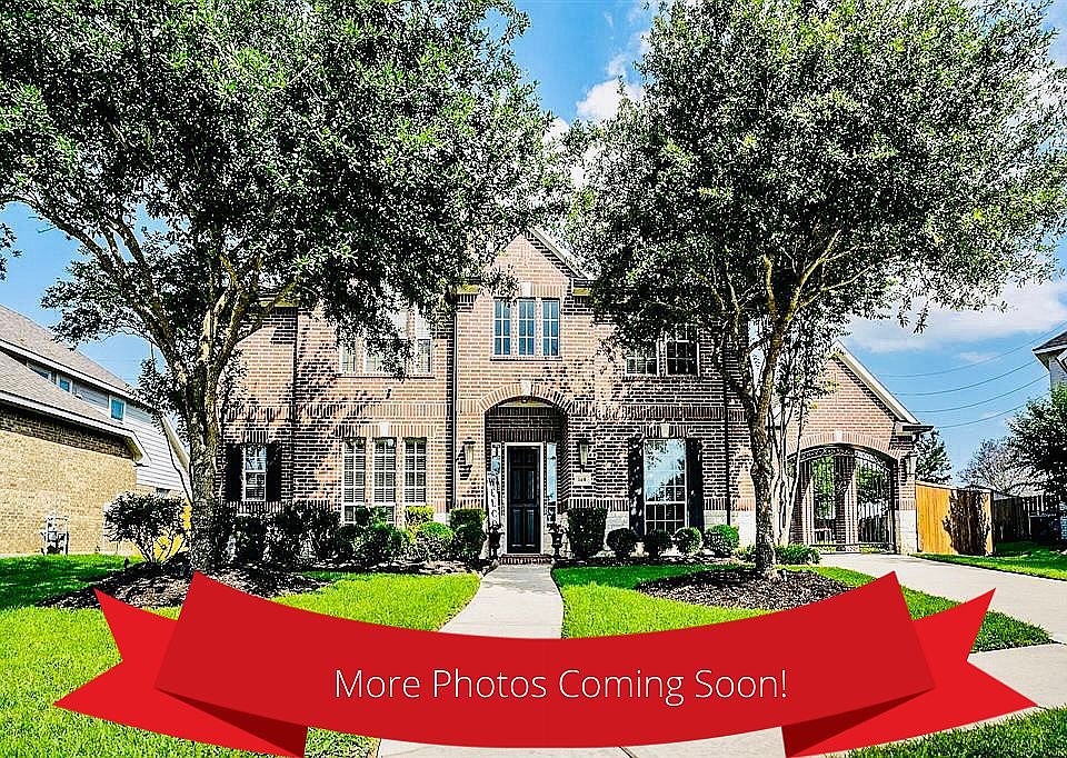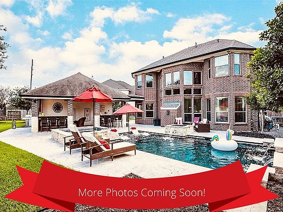 This beautiful brick home boasts all the luxuries of high-class living and has NO BACK DOOR NEIGHBORS! Upon entering the grand foyer, you'll be met by a majestic staircase and hardwood floors. Enter your spacious living area with a cozy fireplace, breakfast bar, private office, and must-see kitchen with stainless steel appliances, an abundance of gorgeous off-white cabinetry, butlers pantry, and beautiful granite countertops. The primary suite is located on the main floor with a luxurious en-suite bathroom including dual vanities, a soaking tub, a separate shower, and a large walk-in closet. Upstairs you'll find a theater room, game room, and 3 bedrooms! Make your way outside to your private oasis featuring a pool (which can be heated), spa, firepit, and large covered patio. Build a workspace in the oversized three-car detached garage. Additional features include a wrought iron gated porte-cochere, extended driveway, and courtyard. This gem truly needs to be seen to believe!