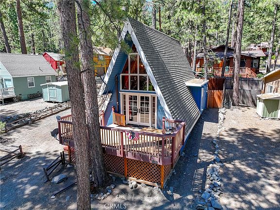 ***A-MAZING A-FRAME*** SHOWINGS START 7/10/24! This charmer offers 2 beds, 1 bath, wood burning stove, lots of knotty pine, exposed beams, vaulted ceilings, shed that can be used as flex space or home office, SPACIOUS front deck for relaxing and entertaining, RV ACCESS and just a quick walk to downtown Wrightwood and it's shops and restaurants!! 1 bedroom up, 1 down... indoor laundry, main level bathroom, no flood zone!! Cute as a button and ready to move right in or start your own BNB!! Lots of details and gingerbread for a great feel no matter the season, this home is ready for your new adventures in beautiful Wrightwood!