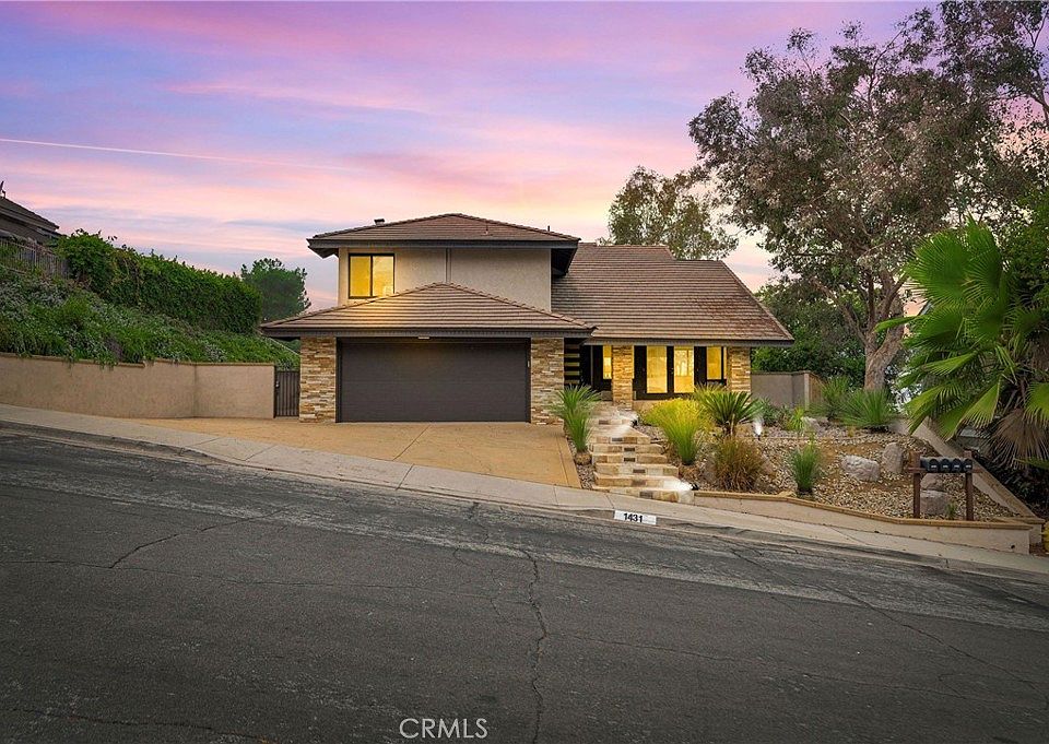 Discover this stunning two-story single-family home with breathtaking mountain views. Officially listed as a 3-bedroom property, it features 4 bedrooms and 2.5 bathrooms, making it perfect for families or those needing extra space. High ceilings in the living room create an airy atmosphere. The dining room seamlessly connects to the living room, while the kitchen opens to the cozy family room. The kitchen boasts granite countertops, stylish glass cabinets, a mini island, and a convenient pantry. Enjoy cozy evenings by the fireplace in the family room. laminate flooring flows throughout the downstairs, complemented by recessed lighting for a modern touch. The spacious master bedroom offers a private balcony with stunning views, plus two closets and a dual vanity in the en-suite bathroom. Three additional bedrooms share a hallway bathroom, which also features a dual vanity for added convenience. Relax on the covered patio in the backyard while taking in the picturesque views. A lush grassy area is perfect for outdoor activities. An attached two-car garage provides ample parking and storage. Situated close to Via Verde Country Club, Ladera Serra Park, and the 57 freeway, this home combines comfort with convenience. Don’t miss out on this gem!