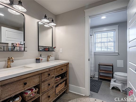 In the lower level there is room for children, family and friends with 2 additional bedroom and 1 bath. There is a living room with fire place that completes the living area downstairs. There are multiple storage rooms and a utility room in the lower level. Current uses in the unfinished area are gym, storage or it could be turned into an arcade area, gold simulator, office, craft room or wood working area. Walk outside on the patio level and you will be greeted with porch swings and a fire pit for entertaining. The storage shed serves as the outdoor maintenance supplies.