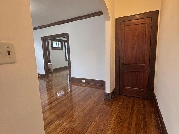 Beautiful first floor apartment on one way street. Features living room, dining room, 3 bedrooms, 1 full bathroom and renovated kitchen. Laundry in basement. Tenant responsible for gas and electric. Background and credit check required. No pets, no parking.