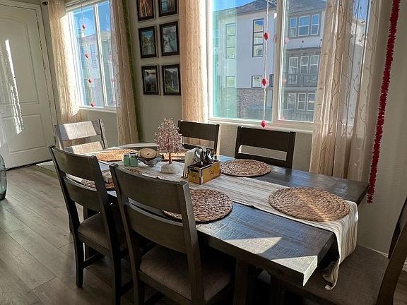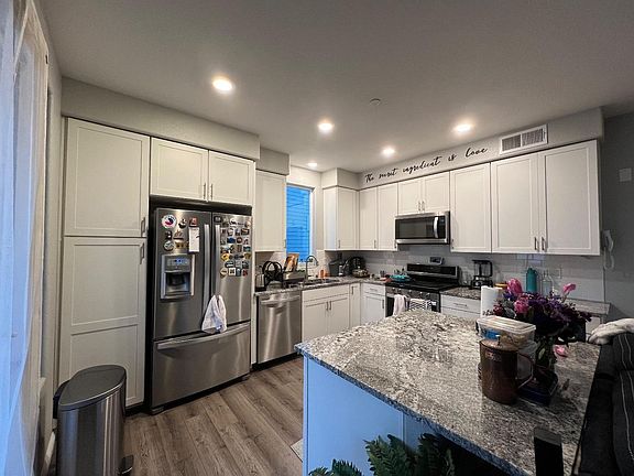 Available starting October 1st. Built in 2019 this North East facing custom-designed condo features an open floor plan with many upgrades. A beautiful well-maintained kitchen with the latest stainless-steel appliances, large center island, white wood shaker cabinets, recessed lighting and granite countertops. Walk into the large and inviting living room with separate dining space, able to seat six people comfortably. Enjoy a spacious master bedroom with en-suite bath, double sink, tile flooring and fully custom built-in walk-in closet. Second bedroom with ample closet space. Living area features wood floors throughout. 2 car garage on the first floor with lots of storage. In home separate area for washer and dryer. The home comes with high end blinds and screens. Large dual pane windows throughout with an abundance of natural light throughout the day. **Elevator access to condo.** Walkable to BART, VTA stations, Trader Joes, Safeway, Asian/Indian grocery stores