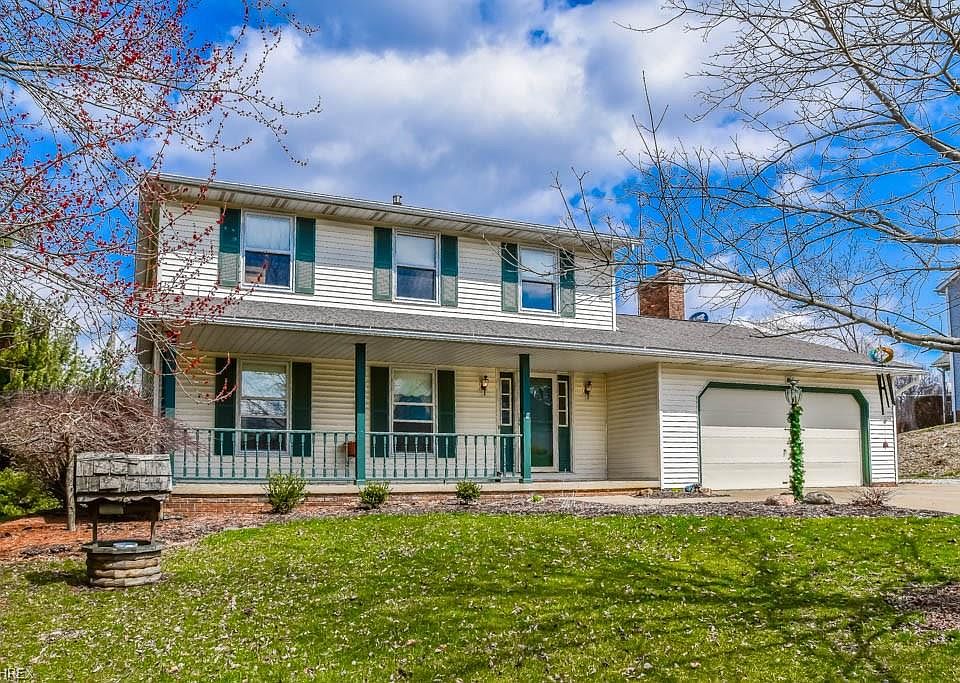 Beautiful 3 bedroom, 2.5 bath colonial with backyard oasis in Green! Enjoy scenic, wooded views from the back deck with a 24-foot aboveground pool with a new liner - a great space for summer parties! There's a nice firepit area and an adorable shed for storing lawn toys. Inside, you'll love the functional and flowing floor plan with lots of storage and multiple living spaces. Gorgeous bamboo flooring leads you from the foyer into the kitchen. The kitchen comes fully applianced with a gas range, stainless steel dishwasher, over the range microwave and refrigerator. It has a pantry, breakfast bar and a dinette. It opens to the family room featuring a wood burning fireplace and built-in speakers. Spacious formal living room and formal dining room with a chair rail. Convenient, remodeled half bath with solid surface counters. Upstairs, you'll find newer carpet, 3 bedrooms and 2 full bathrooms. The master suite offers 2 closets and a private, remodeled full bath with updated flooring and tile shower surround. Partially finished lower level with a large rec room provides extra living space. 2-car attached garage, too. Situated in beautiful Hidden Trails Estates with a lovely covered front porch adding great curb appeal. Don't miss out - call today to schedule a private showing!