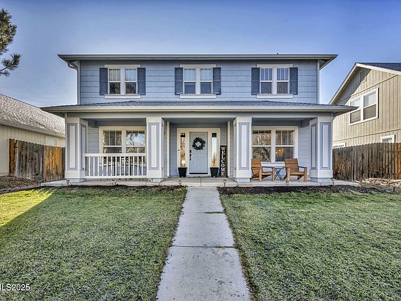 Beautiful home centrally located close to downtown Gardnerville, NV close to shopping, schools and other amenities! An inviting covered porch greets you as you approach the front door. Entering into the home, there is a spacious, cozy living room with attached dining area. The kitchen has a small breakfast bar and nice storage space. On the lower level, you will find the laundry room, a half bath, and a bonus room which could be used as an office, game room, etc. Upstairs, you will find the large, well lit, primary bedroom with walk in closet. The primary bathroom has double sinks, a shower stall and bathtub. The two guest bedrooms are decently sized and there is an additional guest bathroom upstairs as well. From the backyard, you can see the Sierra Nevada Mountain range. There is a nice patio area with plenty of room to enjoy a summer BBQ! Finally, there is a 2 car detached garage. This home has nice appeal and a convenient location for someone looking to be close to town.