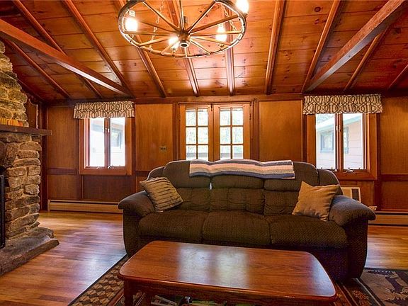 Set back off the road in the middle of 7 wooded acres, you'll have plenty of privacy and peacefulness! This charming rustic home is located across the street from the George Parker Woodland Wildlife Refuge. An attractive stone fireplace is the focal point of the living room with vaulted ceilings and hardwood floors. 2 beds plus a bonus room with built-in bunk beds. Roof, well, and septic are all within last 8 years. What a hidden gem!