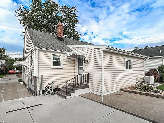 Find this adorable three bedroom, two bathroom cape cod in a choice neighborhood in Mayfield Heights. Walk up to the charming front porch and into the spacious living room, decorated in neutral tones to accommodate any color scheme. Continue on into the eat-in kitchen that boasts wood cabinets, all appliances and windows that bathe the space in natural sunlight. Kitchen then opens directly to the addition, currently used a dining room. This room also has access to the backyard. Master bedroom and first additional bedroom are located on the first floor, with the third bedroom upstairs with a loft area. Large, full basement (25x26) is unfinished and offers endless possibilities! Updates include: hot water tank (2014), refurbished driveway (2015), newer roof, windows and furnace. Violation free. Meticulously landscaped backyard is fenced in for added privacy. Make this home yours today!