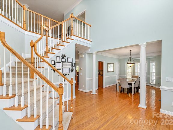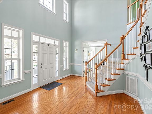 Discover effortless elegance in the peaceful, established community of Porter’s Landing. This stunning home sits on a private, fully fenced, nearly half-acre lot exuding warmth and curb appeal from the moment you arrive. A sprawling covered porch welcomes you inside, where soaring ceilings and a grand staircase make a striking first impression. The kitchen is a showpiece with abundant cabinetry, a large island, and all-new black stainless appliances. The living room features built-ins, a fireplace, and dramatic floor-to-ceiling windows framing views of your backyard oasis. Outside, an 18,000-gallon heated pool with a tanning ledge, diving board, and cozy fire pit sets the stage for unforgettable gatherings. Retreat to a luxurious primary suite with tray ceilings and dual walk-in closets. With no city taxes, a quiet setting, and access to top-rated Hickory Ridge schools, this Cabarrus County gem offers refined living at its finest.