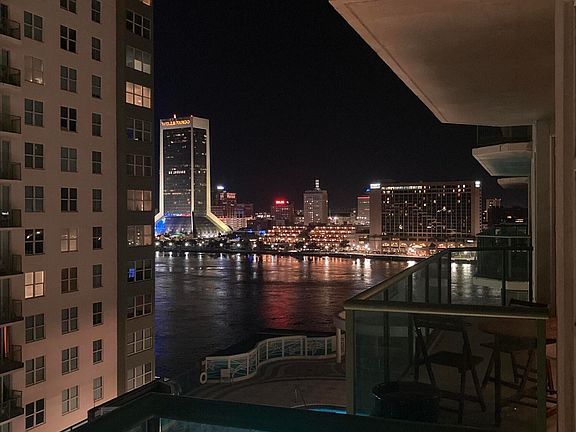 Lives larger than actual square footage! Overlooking the pool, this move in ready unit features wood look tile throughout, Italian marble clad owner's bath with roman tub and separate glass shower. Italian cherry cabinets, stainless appliances, new range and Black Absolute granite throughout!! Enjoy river views from the spacious balcony. 24-hour concierge and valet service, business center, library, coffee bar, conference room, 9th floor clubroom and beautiful pool/jacuzzi, fitness center and spa room with men/ladies locker rooms featuring steam/sauna/jacuzzi's. The 38th floor Apogee Lounge boasts the most magnificent venue to entertain with views of downtown Jacksonville, stadium and St. Johns River! Don't miss out!