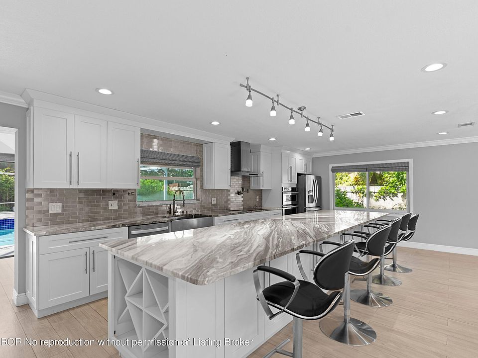 Located on a quiet cul-de-sac in one of Wellington's most desirable neighborhoods, this renovated 4-bedroom, 2.5-bath home sits on an oversized corner lot. The open-concept layout features a chef's kitchen with an oversized island, modern finishes, and stainless steel appliances--ideal for both everyday living and entertaining.The spacious primary suite includes a walk-in closet and a well-appointed en-suite with dual vanities. Enjoy complete privacy in the backyard with a covered patio and sparkling pool. Additional features include a sunroom, ample closet space throughout, two-car garage, and generous driveway parking. A rare opportunity to own a move-in ready home in a premier Wellington location.