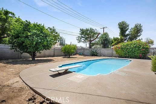 Welcome to this cozy 3 bedroom 2 bathroom with a spacious living room and gas burning fireplace. The kitchen offers upgraded cabinets and flows seamlessly into the living room. The home also includes upgraded double-pane windows, central heating and air, ceiling fans throughout, and a full security system. Indoor laundry with washer and dryer included. Enjoy the large lot that includes a swimming pool-perfect for entertaining, covered patio and fruit trees. The garage includes a built-in workbench for storage or projects. A must see property with comfort, and style!