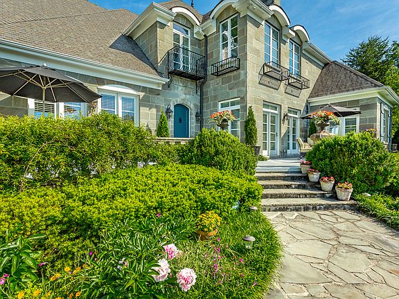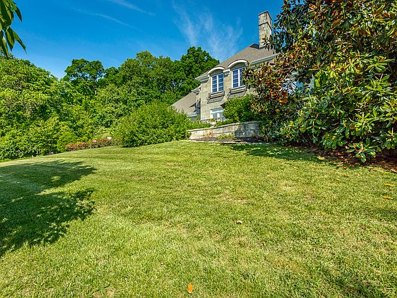 A MUST SEE, one-of-a-kind Signal Mountain estate with unsurpassed views, sanctuary-like setting, immaculate gardens, French-inspired design, and home constructed of full, solid cut Tennessee bluestone. Situated at the end of a long, private tree-lined drive, amidst 2 1/2 acres of lush landscape with countless varietals of trees, shrubs, and easy-care perennials (which provide year-round color), this 5,000+ sq. ft. home personifies beauty. From the expansive terrace you will see incredible views of downtown Chattanooga, the Tennessee River, Lookout Mountain, and the North Carolina mountains in the distance. The back yard features an arbor over a flagstone terrace, a perfect spot for relaxing in the cool shade, while viewing the water lily pond with flowing ceramic urn fountain. An adjacent lot was recently added, which provides plenty of space for a large play yard, pool, fire-pit, or other entertaining area. As you enter the foyer with its flagstone floor, on your left is the over sized dining room, which easily accommodates a banquet table for twelve. A wrought iron and crystal chandelier lends the perfect touch of formality. Two sets of French doors open to the front terrace for indoor-outdoor dining. Across from the dining room is the informal den, complete with stone fireplace, gas logs, and custom, hand forged iron and glass fireplace doors. Built in shelving on either side of the fireplace house television and sound equipment, which connects to speakers throughout the social areas. Two sets of French doors lead to the front terrace. Through the den is the generous master suite, with room enough for a sitting area. A door leads to the front terrace from this room, perfect for late nights viewing the lights. The master bath has travertine floors, double vanities, a large walk in shower, jetted tub, and large linen closet. Next to the bath is a generous closet with a custom shelving system. Adjacent to the den is a chef's kitchen, complete with 5 burner Dacor gas cooktop, 2 Jenn Air convection ovens, microwave, newer Kenmore Elite dishwasher, and newer Samsung refrigerator, all stainless steel. The center island features a rich granite top with furniture quality cabinetry. The cabinetry is custom designed and is hand finished. Countertops are tumbled stone to complement the country French feel of the home. Through the kitchen is the slate floored solarium, with three sets of sliding doors in addition to the door to the back walkway. This is the perfect spot from which to watch the abundant birds in the backyard. Across the hall from the kitchen is the living room, with a fireplace containing gas logs. Two sets of French doors lead to the flagstone terrace covered by the arbor. The second master bedroom is down the hall. With a covered terrace overlooking the front fountain, this retreat offers the ultimate get away for your guests. The large room has a seating area, the bath contains a vanity, shower and separate tub, and a large walk in closet completes this suite. The powder room is next, followed by the very large laundry room, with sink, closet and built in cabinets. One door leads to the backyard, while another goes into the garage. The two car garage is oversized, at 954 square feet, and contains a large storage closet. Upstairs are two large bedrooms, both with fantastic views, seating areas, and large walk in closets. The Jack'n'Jill bath serves both of these bedrooms. A very large bonus room (exercise room, playroom, craft room?) with walk out attic storage on both sides (over 1200 square feet, which can be finished for more living areas) completes the second floor. Throughout the house, quality finishes abound. Hardwood floors are throughout the social rooms. Stone or tile grace the foyer, solarium, all baths, and the laundry rooms, while all bedrooms have newer carpet. The ceilings are ten feet on the main floor, nine feet on the second floor. All three air conditioner units are less than 3 years old, and the two tankless water heaters were installed in 2017. The front and back yards, all landscape beds, and 30 pots are part of the automated irrigation system. The home has a monitored alarm system. Several rooms are freshly painted. The exterior of the house was just painted with Turtle Coat paint that has a 25 year transferable warranty.The front terrace has new epoxy coating, and the entire driveway was re-asphalted, both in May of 2019. Wooden blinds are on most windows. Conveniently located on the side of Signal Mountain for easy access up and down the mountain, this home is less than 10 minutes to the heart of downtown, the hospital, interstate, and waterfront. Award-winning Signal Mountain schools, and low county taxes, make this location very desirable. This home is exceptionally well-maintained and impeccably designed, and offers complete privacy for its owners and guests. This tranquil estate is stunning and breathtaking.