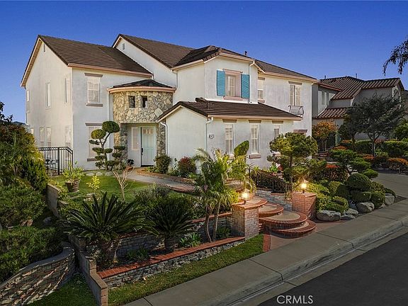 Stunning VIEW of the mountains & citylights, nestled in the prestigious GATED golf course community of "Westridge" offering direct private path to the Westridge Golf Club. This exclusive home perched atop a scenic outlook presents an attractive open floorplan, featuring soaring ceilings and bright, airy interior with expansive windows inviting plenty of refreshing natural light to illuminate light & bright ambiance throughout. Featuring MAIN-LEVEL BEDROOM with ensuite bath flows beautifully from the elegant formal living room with cathedral ceilings and gorgeous chandelier, adjacent formal dining with large picture window, chef's kitchen with island opening out to a massive family room and breakfast nook with intimate fireplace, direct backyard access peer out to an expansive view of endless stretches of sky under private gazebo for relaxing or dining al fresco. Sweeping staircase leads to 4 additional bedrooms including the primary suite with spectacular views of dazzling lights and snow-capped mountain during winter, boasting additional retreat area for seating or office, large dual walk-ins and double-sink in primary bathroom with separate shower and soaking tub for ultimate relaxation. All bedrooms boasts ample space including 3 en-suite bath and 1 Jack & Jill, and convenient 3-CAR GARAGE offering great potential to suit various lifestyles. Take advantage of the premium location with endless shopping & dining options (Westridge Plaza, Trader Joe's, Regal Cinema, Sprouts Market, Lowes, and Costco), just moments away from three distinguished golf courses—Westridge, Coyote Hills and Los Coyotes. Welcome home!