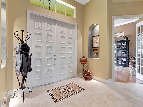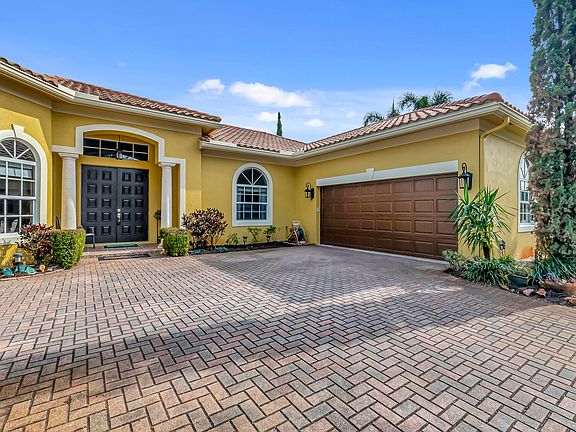 Welcome to this meticulously crafted haven in the heart of Delray where the epitome of luxury living meets unparalleled attention to detail. This extraordinary residence is a testament to refined taste and superior craftsmanship. As you approach, a grand entrance unfolds revealing a lengthy paver driveway that gracefully leads to the double door entry. Step inside and be greeted by the grandeur of 12' ceilings throughout, creating an expansive and airy ambiance. The gourmet kitchen is a chef's dream, boasting 42'' Kraftmaid cabinets with crown molding, granite countertops with an undermount sink, a cooktop, double oven/convection microwave, a large pantry, pot drawers, and an inviting eat-in area and snack counter - a perfect setting for culinary delights. The master bedroom is sanctuary of luxury, featuring tray ceilings and a spa-like ensuite bath. The custom-built cherry double sink vanity, Kohler fixtures, and exquisite tile surround for the jacuzzi tub and shower, complete with body washers, epitomize opulence. Ample storage is provided through large walk-in closets equipped with custom wood sills and shelving. The home's layout follows a thoughtful split plan, with tile on the diagonal enhancing the living spaces and engineered wood flooring gracing the bedrooms. High hats throughout, surround sound throughout the home and on the patio reflect a commitment to modern living.