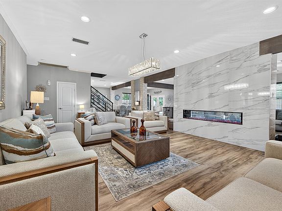 Step into this stunning 4-bedroom, 2.5-bath home where modern style meets everyday comfort. The open living room welcomes you with warm wood-look flooring, abundant natural light, and a sleek accent fireplace. The chef’s kitchen is designed for entertaining with granite countertops, a spacious island, and elegant finishes that flow seamlessly into the dining area.