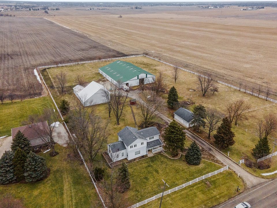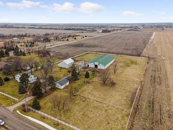 Charming, vintage farmhouse on 5 unincorporated acres with a 3-car garage, horse barn with 9 stalls and interior arena, paddocks, and hay barn with a lean-to for horses. The 2-story house offers a large, country Kitchen with radiant heat floor, recessed task lighting, abundant oak cabinetry, solid-surface counters, table space and French doors leading to an enclosed porch. The Dining Room is adjacent to the Kitchen and is huge. If you don't need a large dining space, use this as your living room. The current Living Room is off the Dining Room (accessed through tall, oak pocket doors) and has a wood-burning stove. A full bathroom and laundry room round out the main floor. The bedrooms are on the 2nd floor, which features updated Pella windows (2012), sculpted Berber carpeting, and newer furnace and A/C (2021). The Primary bedroom offers a large, walk-in closet; tray ceiling with fan; recessed lighting around the perimeter of the room; and 6 windows with honeycomb blinds. The 2nd full bathroom is also on this floor and offers ceramic tile flooring, a tub/shower combination, step-in shower, skylight, and window with honeycomb blinds. The enclosed porch off the kitchen has hardwood flooring, knotty pine walls, a sliding door to the outdoor deck, side door to the driveway, and stairs to the unfinished basement. The basement has storage space, a newer Peerless PureFire boiler (2020) which provides heat to the main floor, newer water heater (2020), 200 amp circuit breaker electrical panel, and water softener. Outside, you will find a spacious 3-car garage, Hay Barn with lofts and an attached lean-to for the horses to shelter when in the paddock. The 132x86 horse barn features 9 stalls with ceiling fans, a divided arena, feed room, tack room, electric lighting plus natural light panels in the ceiling, and 13 ft. high doors on either end. Electric fence tape divides the paddocks the paddock and a vinyl fence surrounds the property with electric rope on the top rail. Other updates include house roof (2014); deck stained (2022); well pump (2020); septic serviced (2021); garage door opener (2018); refrigerator, washer and dryer (2017). Highly rated Lincoln-Way High School District. PLEASE DO NOT WALK THE PROPERTY WITHOUT AN APPOINTMENT. *Property being sold As-Is*
